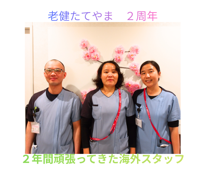 「老健たてやまは2月1日に開所2周年を迎えました。支えてくださった利用者さま、ご家族、地域のみなさま、そして日々現場を支えるスタッフに心から感謝します。これからも“その人らしい暮らし”を大切に、地域のための施設であり続けます。」