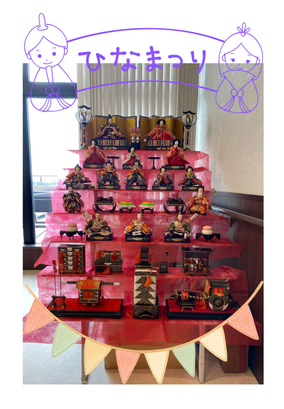来月のひな祭りに向けてお雛様が飾られました。